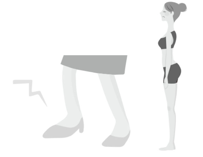 扁平足の方は、「つま先&内側」に重心をかけている方が多いので、「かかと&外側」重心を意識するだけで改善します。