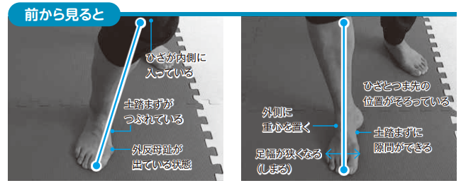 つま先&内側重心になっている場合、アーチもつぶれて扁平足になっています。