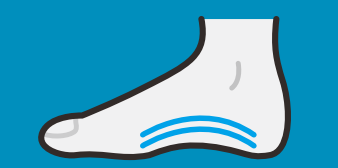 扁平足になっていると、後脛骨筋や長母指屈筋といった筋肉を包む足底筋膜がピンと伸びきった状態になっていて痛みを伴います。土踏まずのアーチをつくってあげることで痛みを和らげることができます。