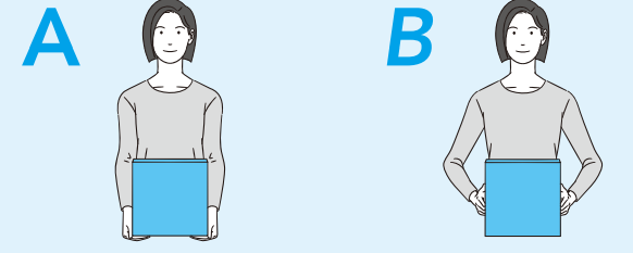 人間には体の構造上、「最も効率的で自然な動き方」というものが決まっています。例えば、ぞうきんを絞るときの動きもそうです。イラストのAとBのどちらのやり方で、あなたはぞうきんを絞っていますか? また、重い箱を持ち上げるとき、AとBのどちらの持ち方のほうが楽に持てそうでしょうか? 正解は、どちらもAです。Aのほうはどちらも両脇をしっかり締めています。体の構造上、脇を締めると無理なく力が伝わるようになるのです。