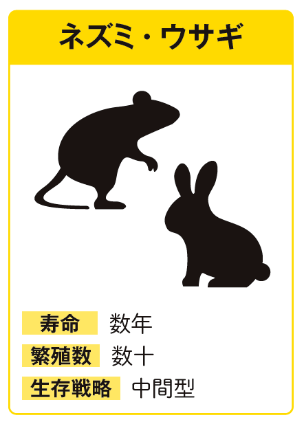生き物の寿命と繁殖数には法則がある。短命な種は数で次世代を増やし、長命な種は少ない子孫を確実に育てあげる。寿命も進化への生存戦略の一部といえる。