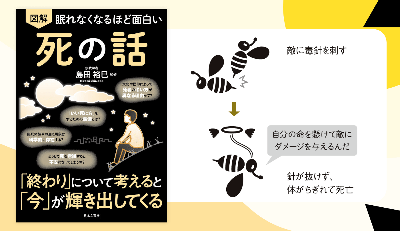 【自己犠牲】なぜミツバチは刺すと死ぬのか? 一族の繁栄を優先する「利他的な死」とは【眠れなくなるほど面白い 図解 死の話】
