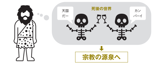 埋葬していた事実から、ネアンデルタール人は死後の世界を想像していたと考えられる。この意識の芽生えが、のちの宗教の源となった。