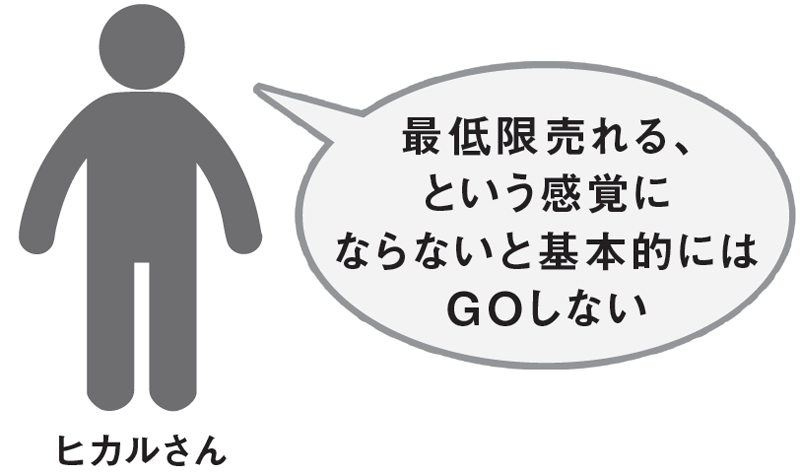 なぜヒカルさんは、これほどの結果を出せるのでしょうか。それは、ヒカルさん自身に案件に対してのイメージができて、「こう訴求すればいける」と見えたものだけ、あるいは話を聞いて「このストーリーならいける」とわかったものだけを扱っているからです。実際、ヒカルさん自身も「最低限売れる、という感覚にならないと基本的にはGOしない」と述べています。
