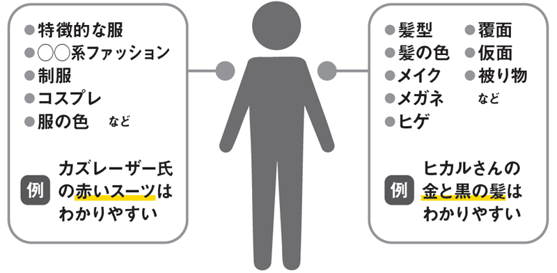 一般的にブランディングの方法は、話し方や態度、独自の視点や考え方、特徴的な行動などで個性を示すことができます。髪型や髪色、服装、ヒゲなど、外見を活かした印象づけなどもあります。ヒカルさんといえば金と黒のツートンの髪型で、一発でヒカルさんだとわかりますよね。カズレーサー氏の赤いスーツも服装でできる印象付けの例だと思います。