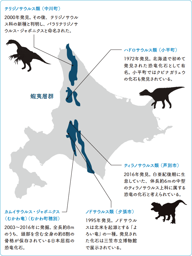 北海道で見つかった主な恐竜化石