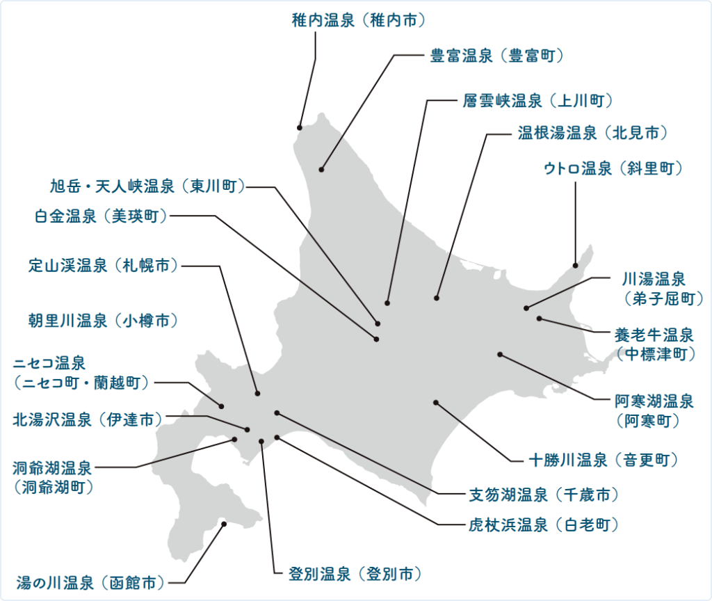 道内の温泉地は、日本海側を南北に走る那須火山帯と、千島列島から西に向かう千島火山帯の周辺に多く、前者には樽前山、有珠山など、後者には摩周岳、雄阿寒岳など活火山も多くあります。