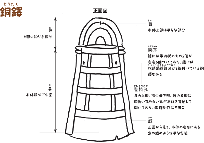 にゃん太:「銅鐸」って、なんかお寺の釣鐘のような形をしているね?