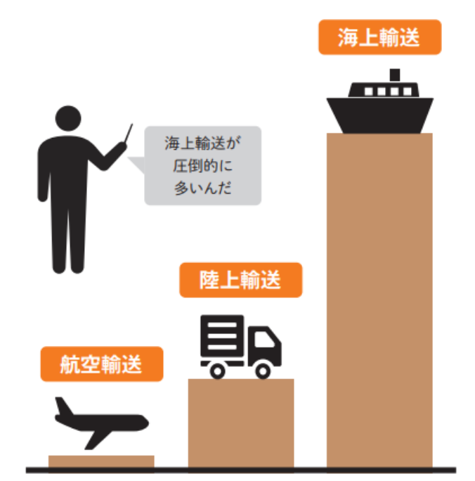 私たちの身の回りにある食べ物や服、毎日使っている電気やガスのともとなるエネルギー資源。その多くは、はるか遠い国や地域から運ばれてきたものです。実は国際貿易で動く貨物の多くは、今も船によって運ばれています。空を飛ぶ航空輸送よりも、陸を走る陸上輸送よりも、世界の物流を支えているのは海を渡る海上輸送なのです。
