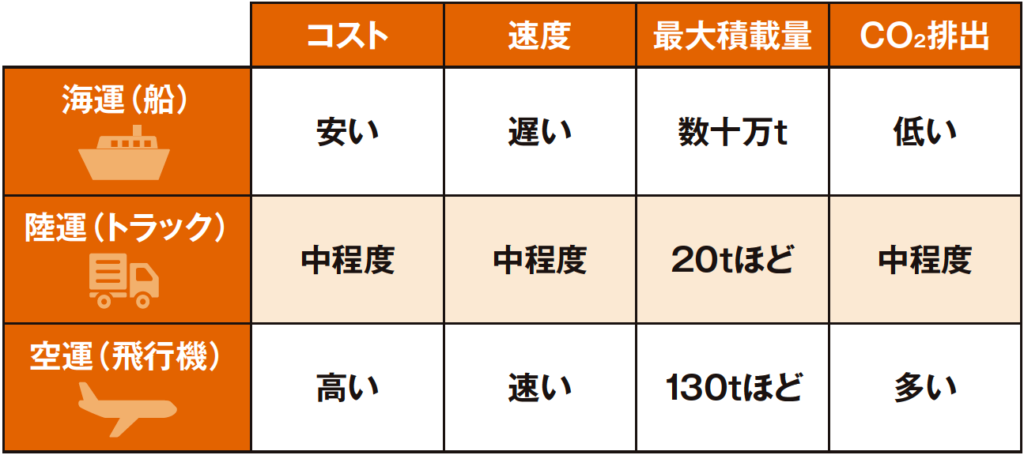 同じ重さの荷物を運ぶ場合、船はとても燃料効率がよく、コストを抑えて長距離を走れるため、国際物流の主役となっています。