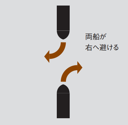 もっともよく使われるのが、互いに正面から向かい合う場合です。このときは、両方の船が少し右へ針路を変え、すれ違うようにして衝突を避けます。陸上の「右側通行」に近い考え方で、世界共通の基本ルールになっており、初心者にも理解しやすいしくみといえるでしょう。