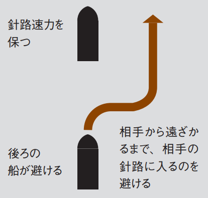 そして追い越しの場合は、後ろから追い抜く側が避けるのが決まりです。追い越される側は急に針路を変えず、一定の動きを保つことで、安全に追い越すことができます。