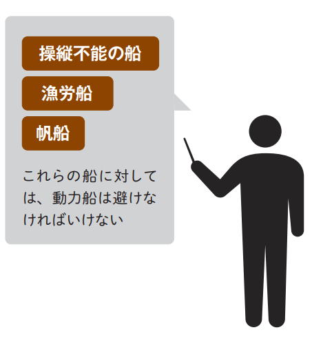 針路を保つ船を「保持船」、針路を変える船を「避航船」といいます。