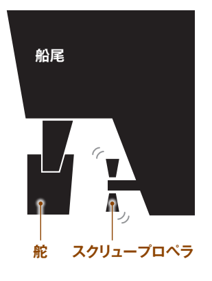 舵は多くの場合、スクリュープロペラのすぐ後方に配置されます。プロペラが押し出す水流を直接受けられるため、舵が効率よく力を発揮できるためです。その結果、船体は大きな弧を描くように針路を変えていきます。