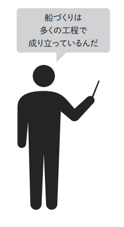 船づくりは設計からはじまり、鋼板加工、部材組立を経てブロックが完成します。設計図に描かれた構造が少しずつ形になり、次の工程へ進んでいきます。