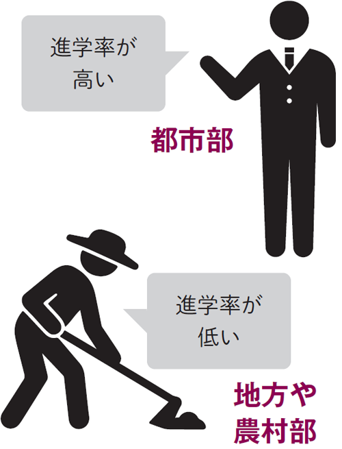 高校に進学するか就職するかには、家庭の都合や経済力などが大きく影響しました。また、都市部と地方・農村部で進学率にかなりの差があったといいます。