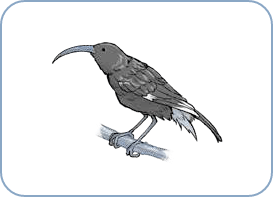 1895年に絶滅。非常に細長くカーブしたくちばしが特徴的で、ハワイフトモモの花の蜜や木の中にいる昆虫を食べていた。