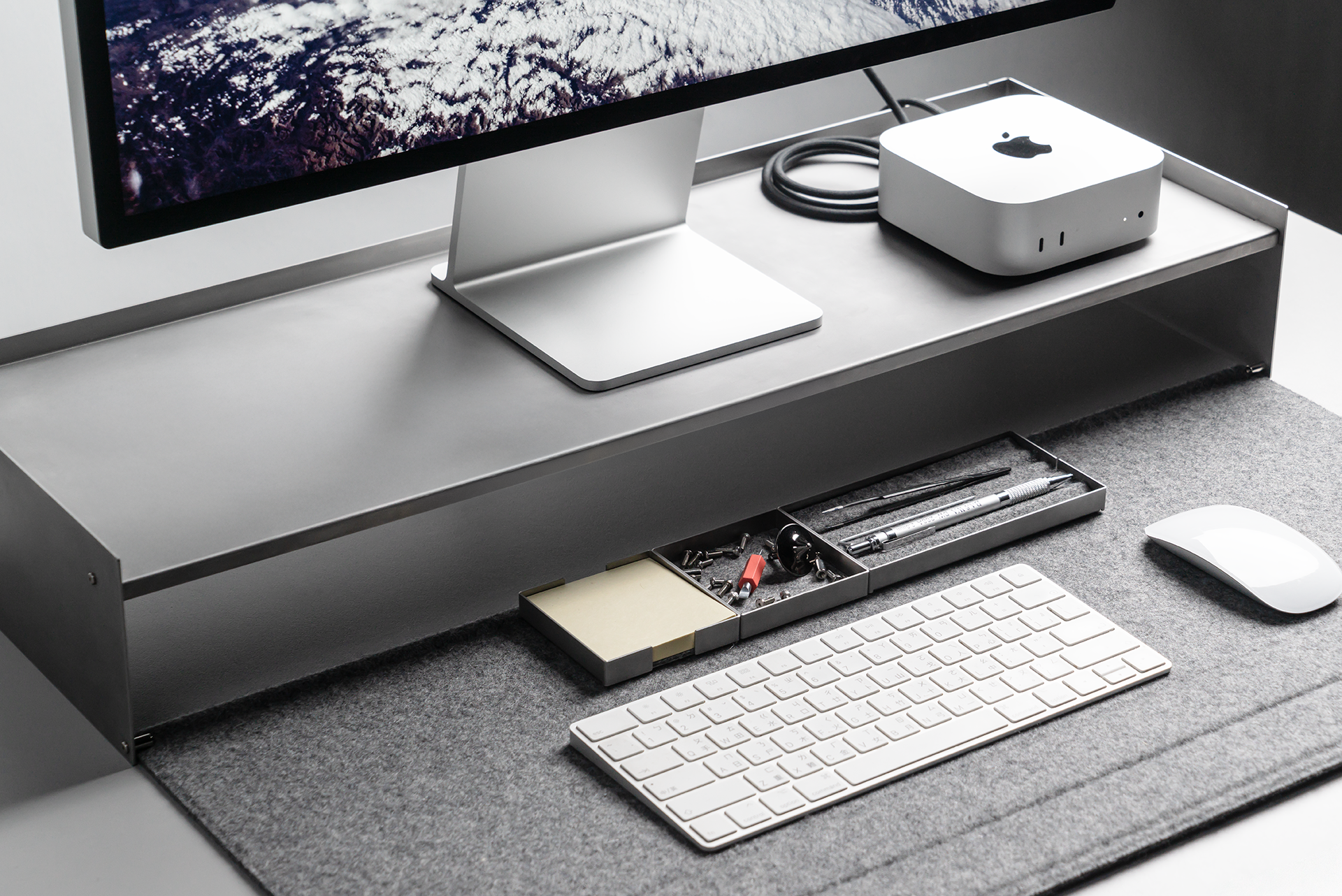 展開 × 収納 ― デスクをすっきり快適に整える、新しいモニタースタンド。