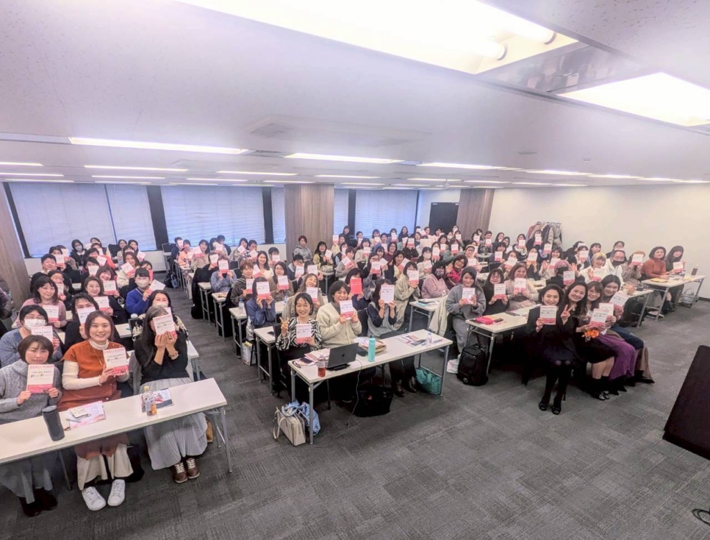 その日のプログラムは、「RISTARTÉ(リスタルテ)」4名の占い師が一人一人テーマに沿って解説し、参加者は、白とピンクの表紙の本を手に、本には載っていない「新しい私」の始め方のレクチャーを受けました。