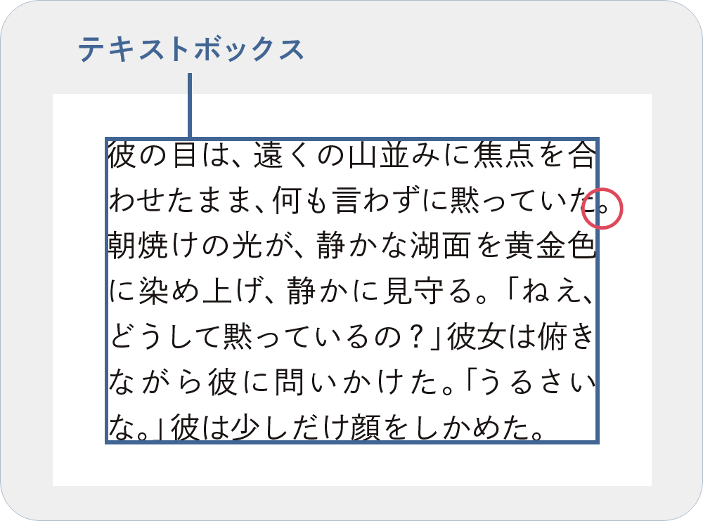 テキストボックスの外に句読点(。や、)をはみ出させること。