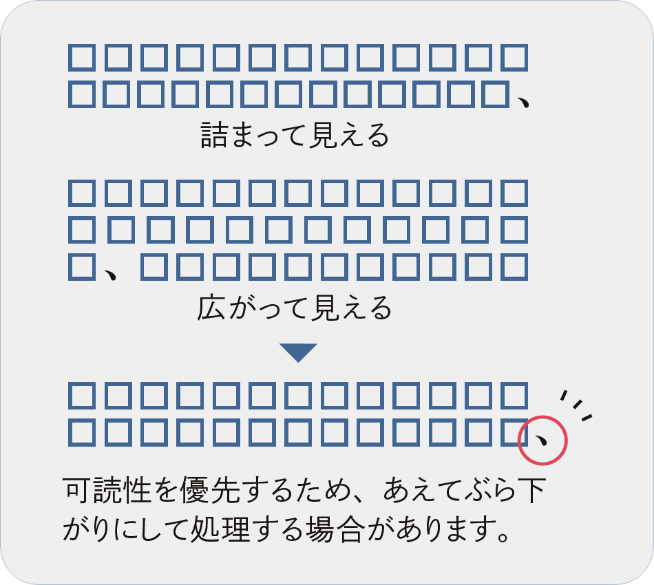 の3つのルールがあり、文章の長さや字間、文字送りなどを調整し、文章を見やすくします。