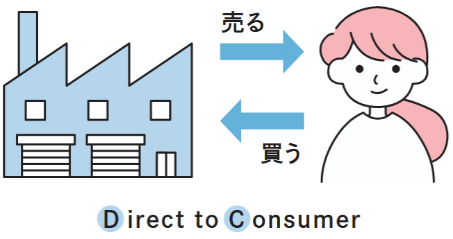 メーカーが自社の商品を仲介業者を介したり店舗販売をしたりすることなく、自社サイトやSNS、アプリなどを活用し、直接顧客に販売すること。