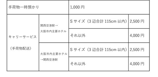 ・関西空港→ホテル 申込締切14:00、ホテル受取り19:00以降