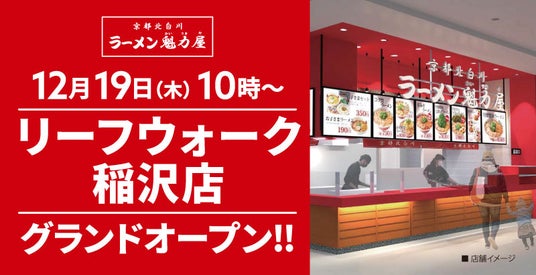 京都北白川ラーメン魁力屋をチェーン展開する株式会社魁力屋(https://corp.kairikiya.co.jp/本社:京都市中京区、代表取締役社長:藤田 宗、以下魁力屋)は、2024年12月19日(木)に「京都北白川ラーメン魁力屋 リーフウォーク稲沢店」を愛知県稲沢市にグランドオープンいたします。
