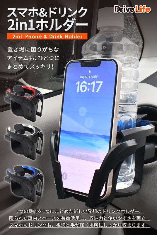 【シズカウィル】ドリンク&スマホを同時にホールド!「DriveLife」車載2in1ホルダー新登場!