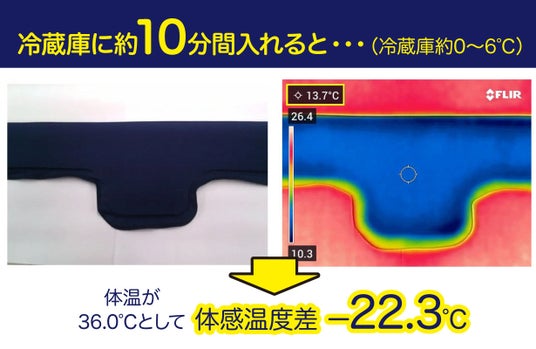 冷蔵庫に約10分入れれば、体感温度差 約-22.3℃!首の後ろは幅10cmで広い範囲でカバー!厚さ約6mmのぷにぷにやわらかゲルのフィット感がたまらない!首まわり360°ひんやり♪