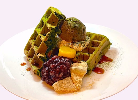 マロンとバナナのチョコレートワッフル香ばしく焼き上げたワッフルに、ほろ苦く甘いチョコレートソースをたっぷり。とろけるバニラアイスと、甘く煮た栗、フレッシュなバナナを添えて、見た目を華やかにに仕上げました。コーヒーや紅茶とともに、午後のくつろぎタイムにぴったりのスイーツです。抹茶やほうじ茶を使用した「和スイーツ」