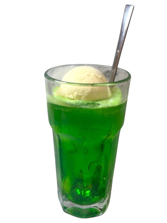 バナナ、りんご、黄桃、パイン…昭和の純喫茶を思わせる懐かしくて濃厚な味わいに、バニラアイスを贅沢にトッピング。冷たいジュースとアイスのとろけるハーモニーは、まさに“万博のご褒美”。お子様から大人まで、どこか懐かしい気持ちになれる、大阪ならではの一杯です。**カフェ英國屋の “本物の喫茶の味 ” ** を、ぜひ万博会場でお楽しみください。 - クリームソーダ(メロンソーダ) 1,000円