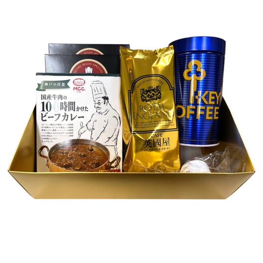 写真:英国屋監修の「ロイヤルブレンドコーヒー」と、MCC神戸の「100時間かけたビーフカレー」を詰め合わせた特製ギフトセット。上質なひとときを演出する、贈り物にも最適な組み合わせです。(4月26日時点で内容に変更がありました。)「英國屋ビーフカレー」×1箱、「100時間かけたビーフカレー」×1箱、「英國屋スペシャルブレンドコーヒー」×1箱、「KEYKOFFEE」×1箱のセットです。 #大阪万博 #EXPO2025 #ORA外食パビリオン #万博グルメ #万博スイーツ #万博ソーダ #55年前の万博カレー #目玉ドリンク #テイクアウト万博 #予約なしで買えるテイクアウト専門店ならではの魅力