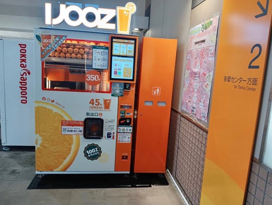 【多摩都市モノレール】中央大学・明星大学駅で350円生搾りオレンジジュース自販機「IJOOZ」が稼働開始