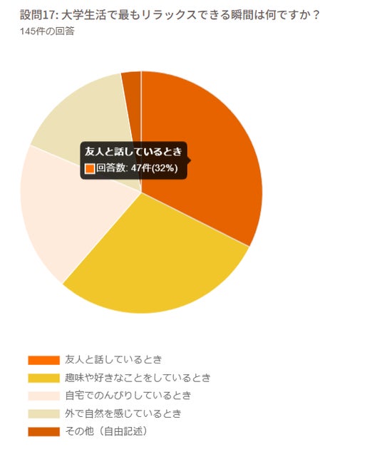 設問:大学生活で最もリラックスできる瞬間は何ですか?