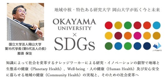 国立大学法人岡山大学は、国連の「持続可能な開発目標(SDGs)」を支援しています。また、政府の第1回「ジャパンSDGsアワード」特別賞を受賞しています。地域中核・特色ある研究大学として共育共創を進める岡山大学にご期待ください
