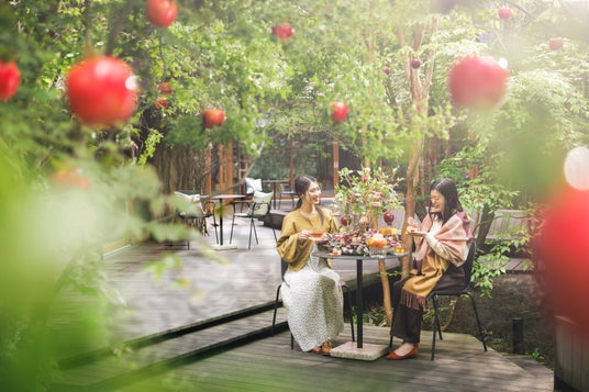 「居酒屋以上 旅未満 みんなでルーズに過ごすホテル」をコンセプトとする「星野リゾート BEB5軽井沢(ベブ)」では、2024年10月1日から31日までの間、まるでりんごの木!?りんご尽くしのスイーツやセイボリー10種が楽しめる「BEBりんごハロウィンアフタヌーンティー」を提供します。りんごの木に見立てたオリジナルスタンドには、りんごを使用したケーキやセイボリーが並び、焼き立てのスコーンには食べ比べできる5種類のりんごジャムをつけて味わえます。アフタヌーンティーに欠かせない紅茶には、カットしたりんごをまるごと1個使用しているので、目で見ても、味わってもりんごを感じられます。りんごジャック・オー・ランタンで装飾された中庭で楽しむアフタヌーンティーは、信州ならではのりんごをモチーフとした“かわいい”ハロウィンを、いつもの仲間と気軽に体験することができます。