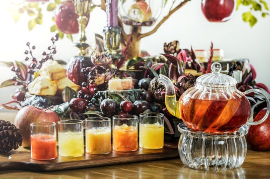 まるでりんごを木から収穫するかのように楽しめるオリジナルスタンドで、りんごハロウィンアフタヌーンティーを提供します。伝統的な3段スタイルのものをアレンジし、スイーツを木に実るりんごに見立てて仕上げたので、ちょっぴり優雅なりんご狩り気分も味わえます。スイーツはりんごのロールケーキやりんごキャラメルのケーキなどのりんごを使用したものから、セイボリーにはキッシュやりんご生ハムなどの10種類です。