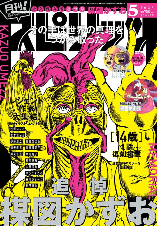 週スピでは【楳図かずおシール】が付録に!月スピでは13名の漫画家・著名人の寄稿を掲載!
