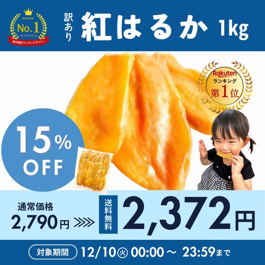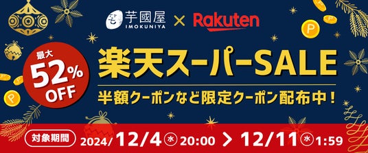 創業からわずか2年で、ネット通販1日1万件以上の注文を記録し、楽天市場で総合ランキング1位を獲得した芋國屋(本社 千葉県流山市)は年に4回のビックイベント楽天スーパーセール(12/4 20:00~12/11 1:59)期間中、人気商品を大特価で販売致します!