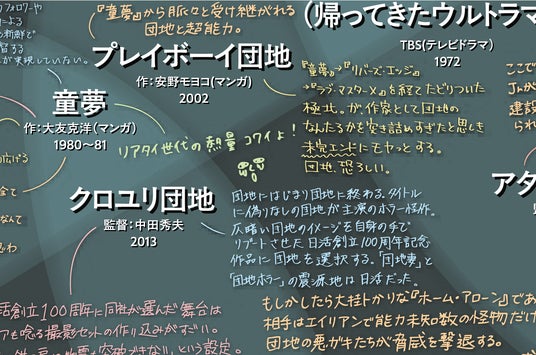 かつて団地が今ほど注目されていなかった時代から、「フィクションに登場する団地」の魅力をいち早く発見し、それを言語化して発信する活動を行ってきた団地団。その団地をめぐる言説の魅力は、映画、アニメ、ドラマ、小説、漫画などを縦横無尽に参照し、各所に登場する団地について、それぞれの知見から、好き勝手に繰り広げられていく、そうした過程にこそあるといえるでしょう。自由で、散漫で、時に宇宙レベルにも達し、ややもすると飛躍し過ぎとも思える放談の数々は、それゆえに、団地団にしかたどり着けない、唯一無二の批評世界をもたらしてくれます。この豊かな団地批評を、一人でも多くの方に届けたいと思います。