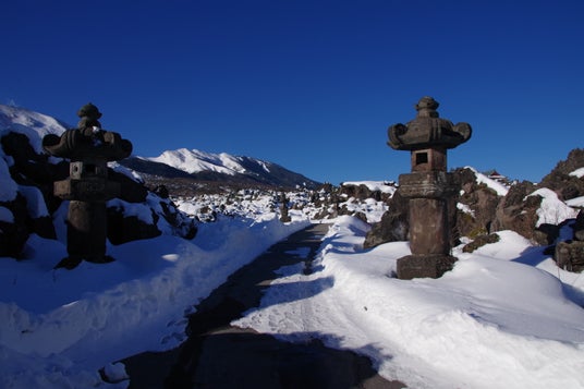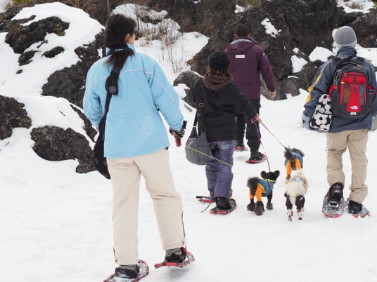 高山植物観察コースから奥の院参道の約2kmの雪道を歩くスノーシューハイク。ふかふか、ザクザク、真っ白な雪と溶岩の黒のコントラストが夏の鬼押出し園とはまったく別の表情で皆さまを異世界へ誘う絶景スノーシュー体験。カップル、ご家族、ワンちゃんとご一緒に澄んだ空気をからだいっぱい吸い込んで大きく深呼吸。目の前に広がる力強く壮大な景観をお楽しみいただき、日頃の喧騒から解き放たれ大自然の静寂を体感していただけます。