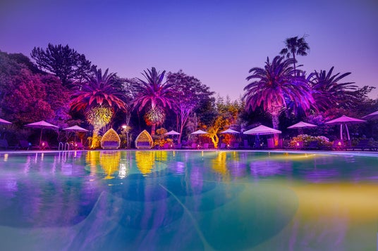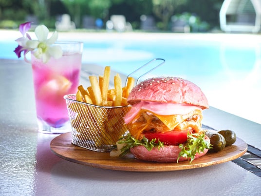 昼夜で雰囲気が変わる南国風アウトドアプールと、プールに映える“食べるアート”を堪能