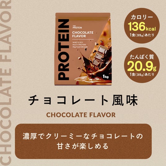カフェオレ風味:https://www.amazon.co.jp/dp/B0DWDSP4FM チョコレート風味:https://www.amazon.co.jp/dp/B0DWDQGTZ9 ミックスベリー風味:https://www.amazon.co.jp/dp/B0DWDTNMS6 〈プロテインブランド THE PROTEIN(通称:ザプロ)とは〉 プロテインブランド THE PROTEIN(通称:ザプロ)は企画から原料調達、処方、製造、販売までを一貫して自社で行っているため、商品原価以外の費用を削減しながら、 リーズナブルかつ迅速に、商品をお客様の元にお届けしています。 また、お客様に長く継続して飲んで頂けるように、SNSや商品に関するレビューに対して真摯に向き合い スピーディーに商品の改善や、新商品開発に繋げることを重要な価値観としております。 トップアスリートの肉体作りから、健康促進・ダイエット目的まで。老若男女問わず、幅広い世代に ザプロだから提供できる価値を体感してもらえるように日々の研究や、安心安全の追求に努めています。 私たちはお客様にとって「毎日飲みたくなるプロテイン」を目指して、皆さまの日々の健康生活、トレーニング生活を 楽しくサポートして行きます。 ザプロをぜひお試しください。