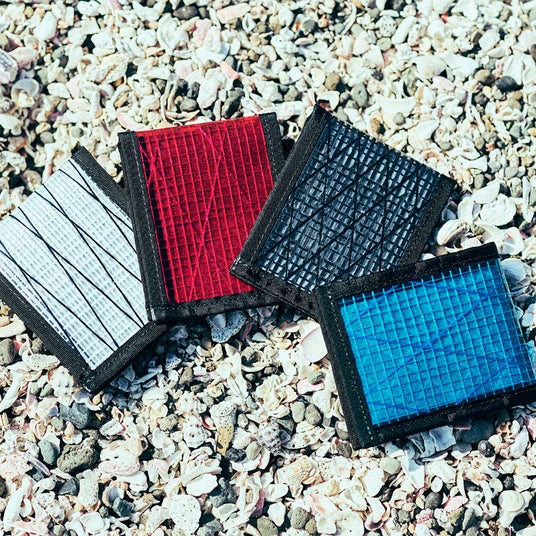 カードホルダーレース用ヨットの帆布の残布を使用し、カードやお札を入れるための美しくシンプルなカードケース兼ウォレット。