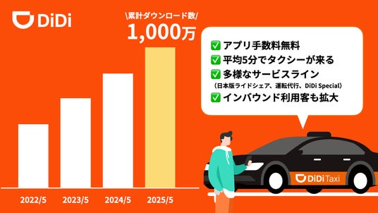 タクシーアプリ「DiDi(ディディ)」、累計1,000万ダウンロードを突破!~新テレビCMも放映開始「使うなら、手数料のいらないタクシーアプリ」~