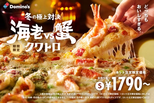 株式会社ドミノ・ピザ ジャパン(代表取締役:ジョシュア・キリムニック、CEO:マーティン・スティーンクス、本社:東京都品川区、以下:ドミノ・ピザ)が展開する国内No.1シェアを誇る宅配ピザチェーン ドミノ・ピザは、2024年12月2日(月)から2025年1月13日(月・祝)までの期間限定で冬に大人気の極上食材、海老と蟹を贅沢に楽しめる「海老vs蟹 クワトロ(エビ ブイエス カニ クワトロ)」を発売します。また同日、「海老vs蟹 クワトロ」発売記念企画として、冬の極上食材「海老と蟹」全国民が好きなのはどっちなのか、決着をつけるための「海老vs蟹 国民大投票」を開催します。