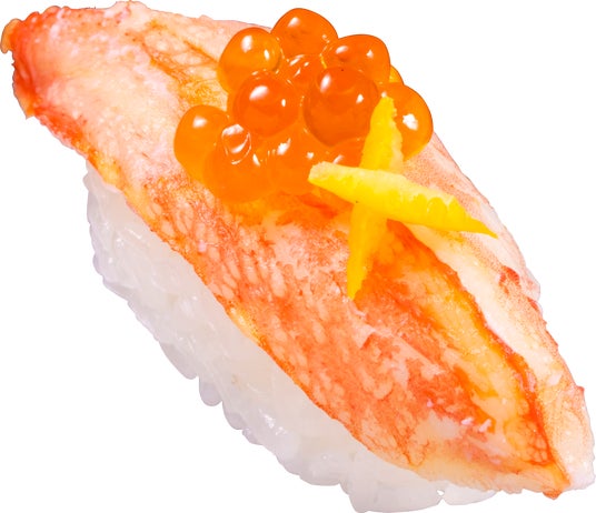 人気定番ネタである鱒いくらをのせ、刻み柚子をトッピングした風味豊かな一品です。