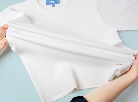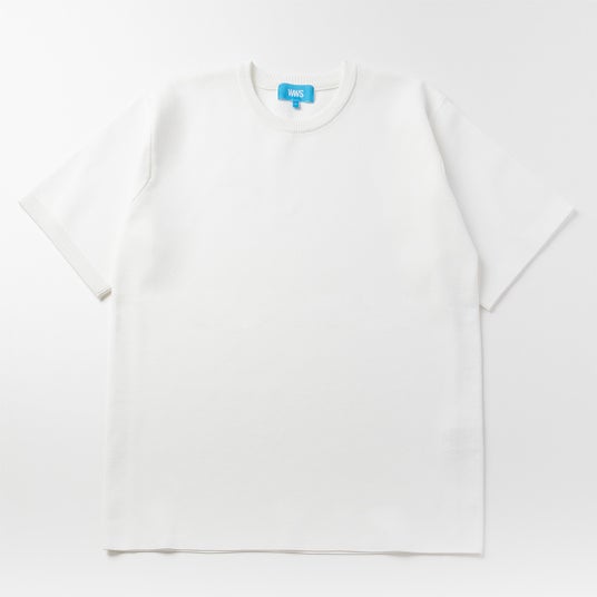 この度、2025年4月11日(金)13:00よりWWS公式オンラインストアとWWS公式ストアにて、洗濯機で丸洗いでき、3時間で乾く「洗えるニットTシャツ」を販売開始いたします。ジャケットに合わせやすい丈感で、Tシャツよりも上品な大人のスタイルが叶うように、体のラインを拾わない絶妙な厚みとシルエットにこだわりました。また、生地を編む際に、あえて編み目の密度を低く設計し、蒸れにくい通気性を実現。