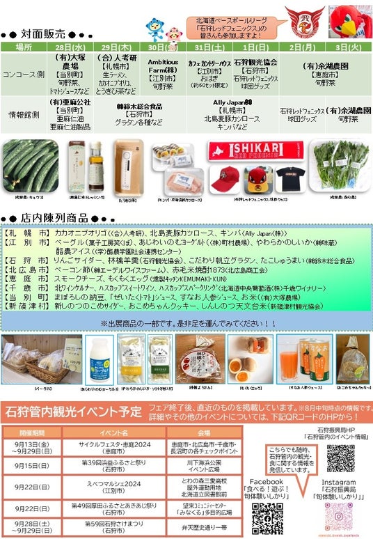 様々な石狩地域の「美味しい」が勢揃いする特産品販売をメインに、観光情報も発信します!